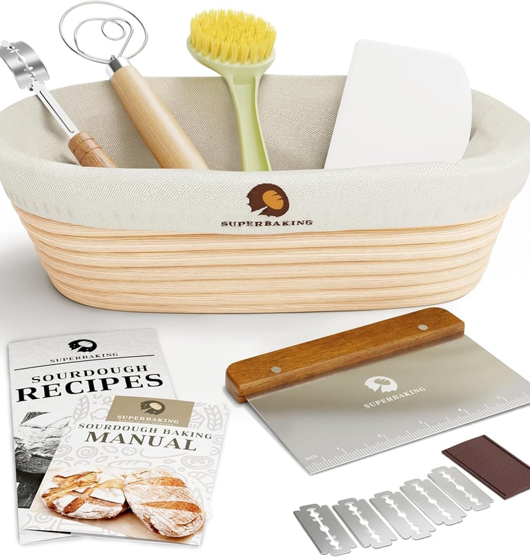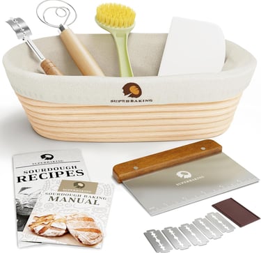 Superbaking Banneton Bread Proofing Basket Set, Oval 10" Sourdough Proofing Basket for Bread Making Tools Supplies, Bread Baking Supplies, Artisan Bread Kit, Gifts for Bakers