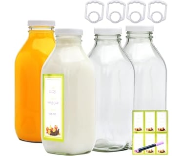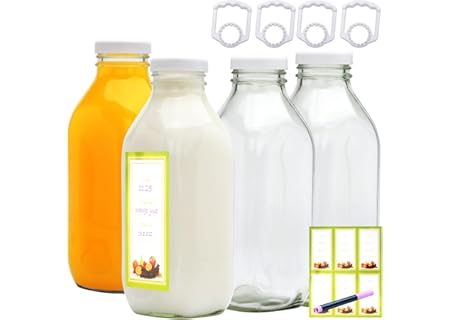 31 oz Square Milk Jars, Reusable Glass Jar, Containers with Lids and Carrying Handles, Yogurt, Smoothies, Juice, Honey, Lemon Tea, Gift Giving, Practical Kitchen Tool,4 Pack