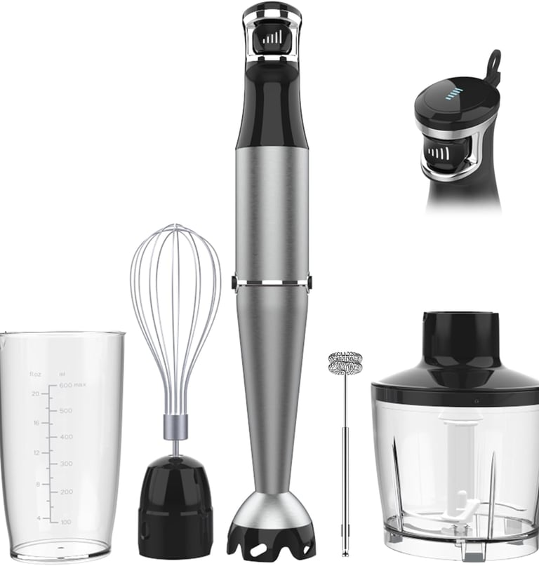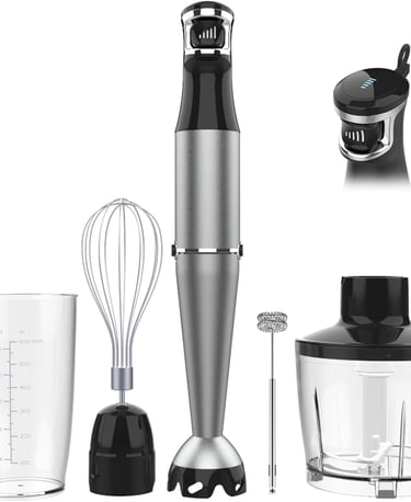 Immersion Blender Handheld Hand Blender 1100W, Trigger Variable Speed 5 in 1 Stick Blender, Emulsion Blender with Chopper, Whisk and Frother for Soup, Baby Food and Smoothies